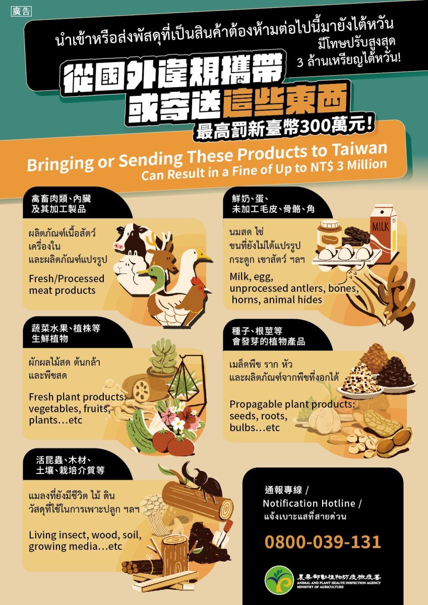 三、檢附農業部動植物防疫檢疫署來函及「動植物檢疫多國語言宣導圖卡(中英泰印越)」乙份供參。