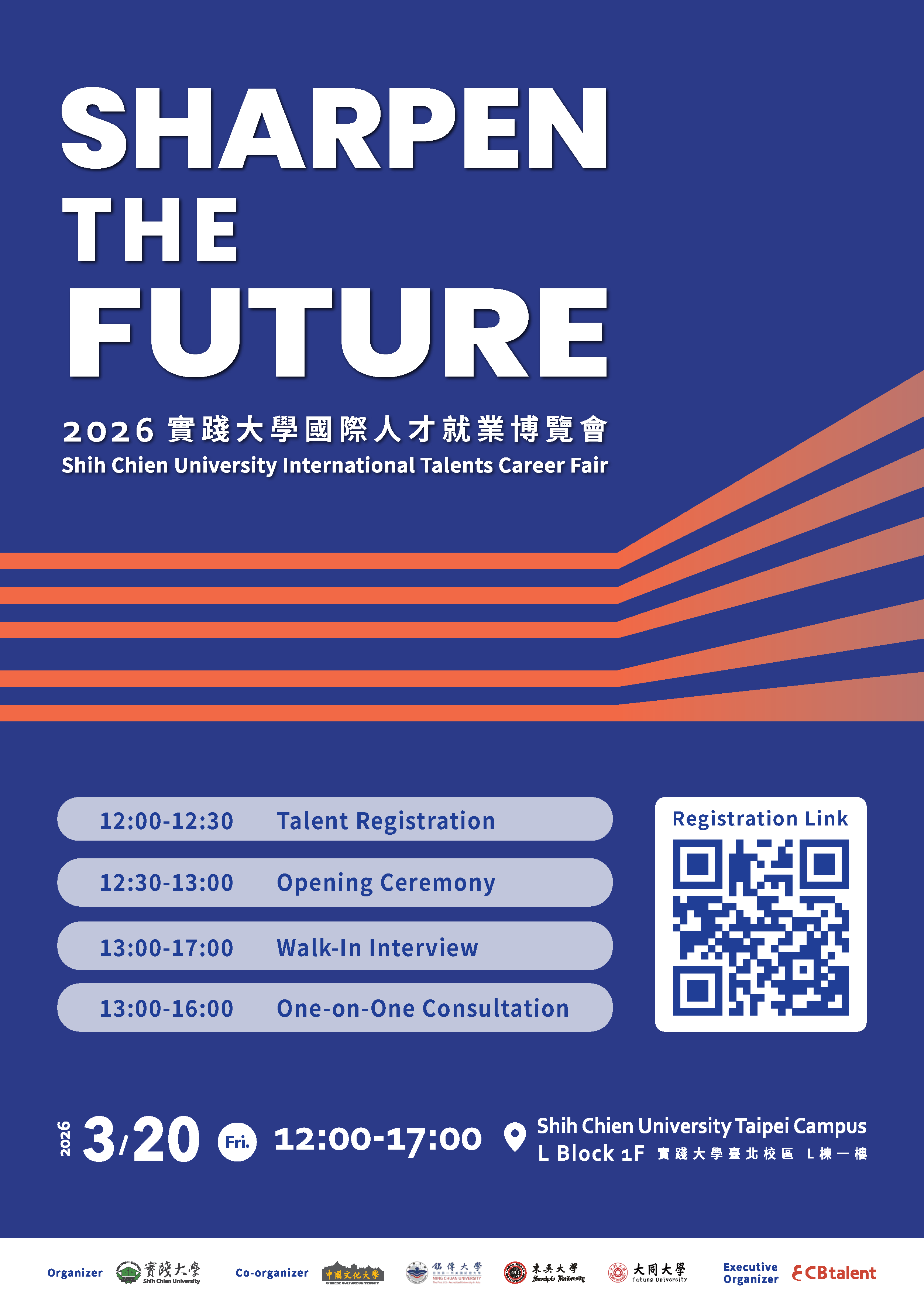 一、為促進境外學生及國際人才在臺就業發展,並強化大專校院與產業間之人才媒合與交流,實踐大學訂於115年3月20日(星期五)12時至17時,於臺北校區L棟1樓辦理旨揭活動。
