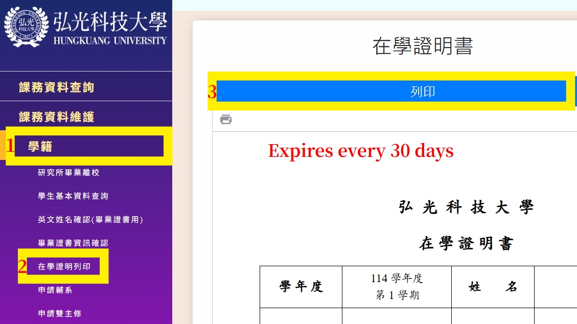 • 在學證明 (Certificate of Enrollment)